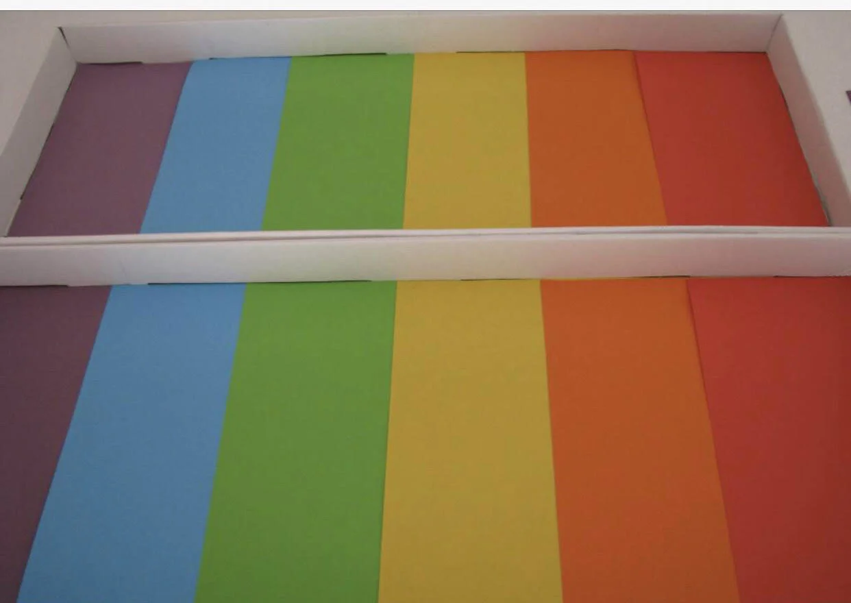 1. Cut big strips of your poster paper and tape them to each other and against the tray as seen in the photo above.